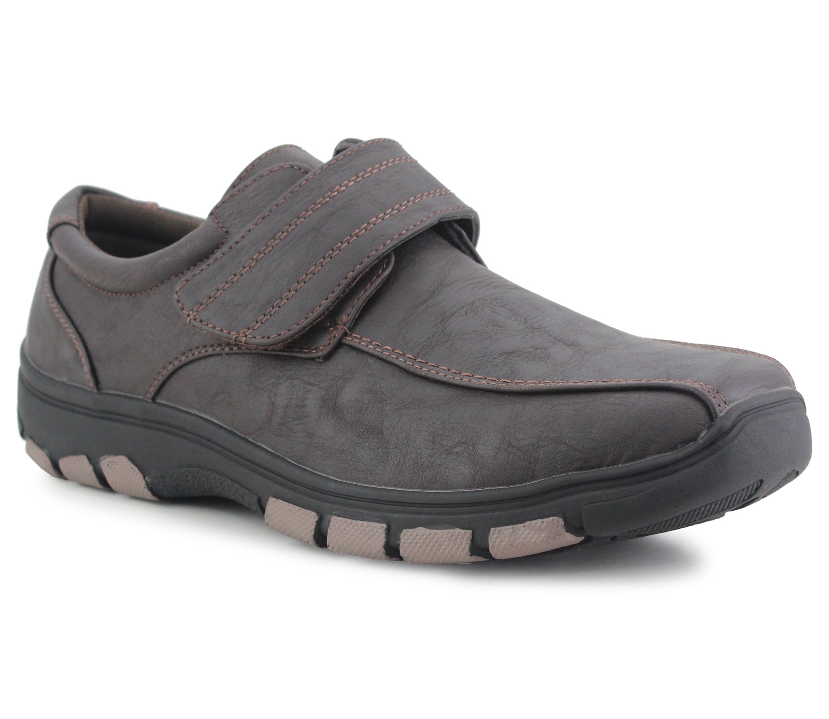 LS06 Mens Touch Fasten Faux Leather Loafers in Brown