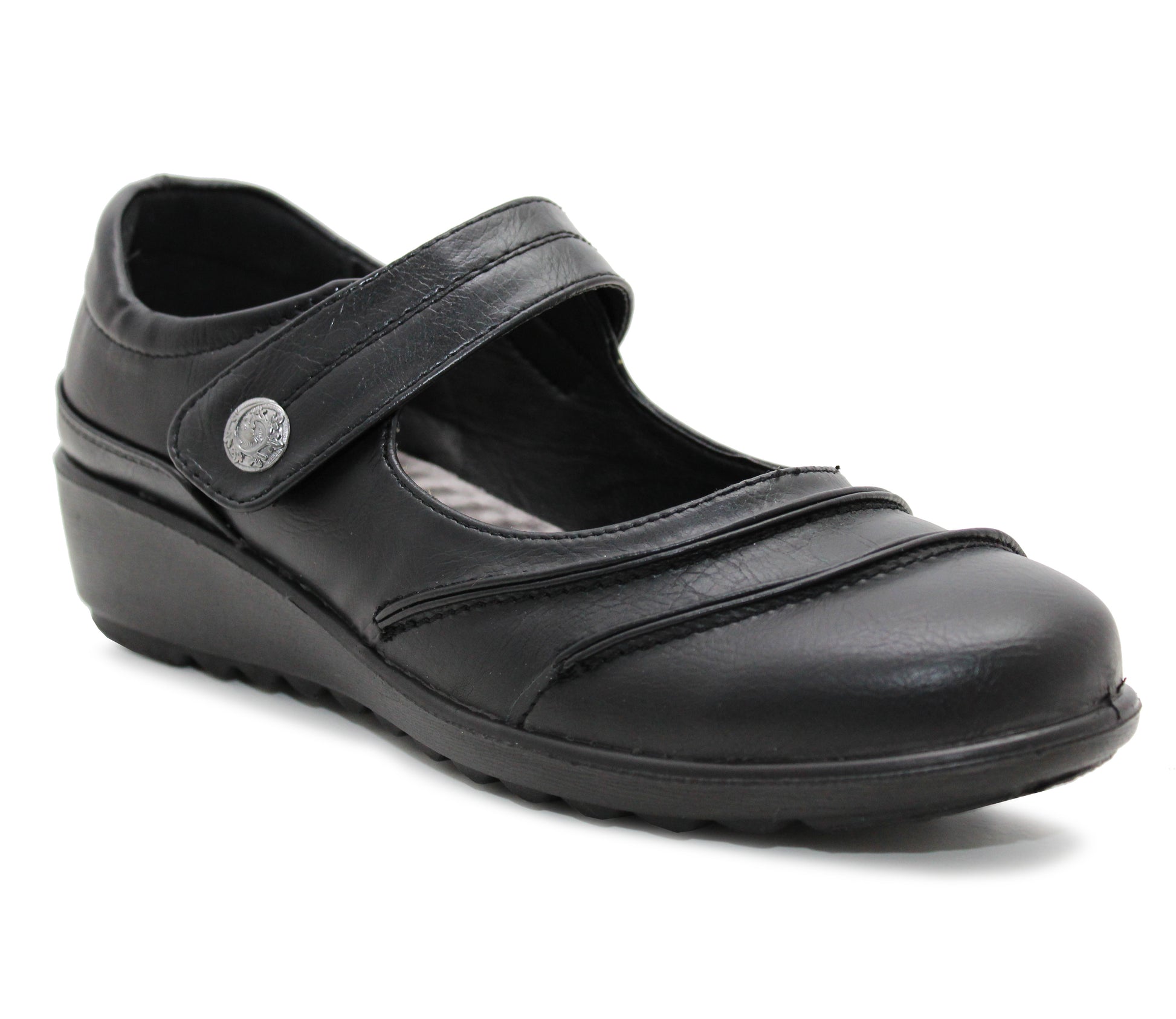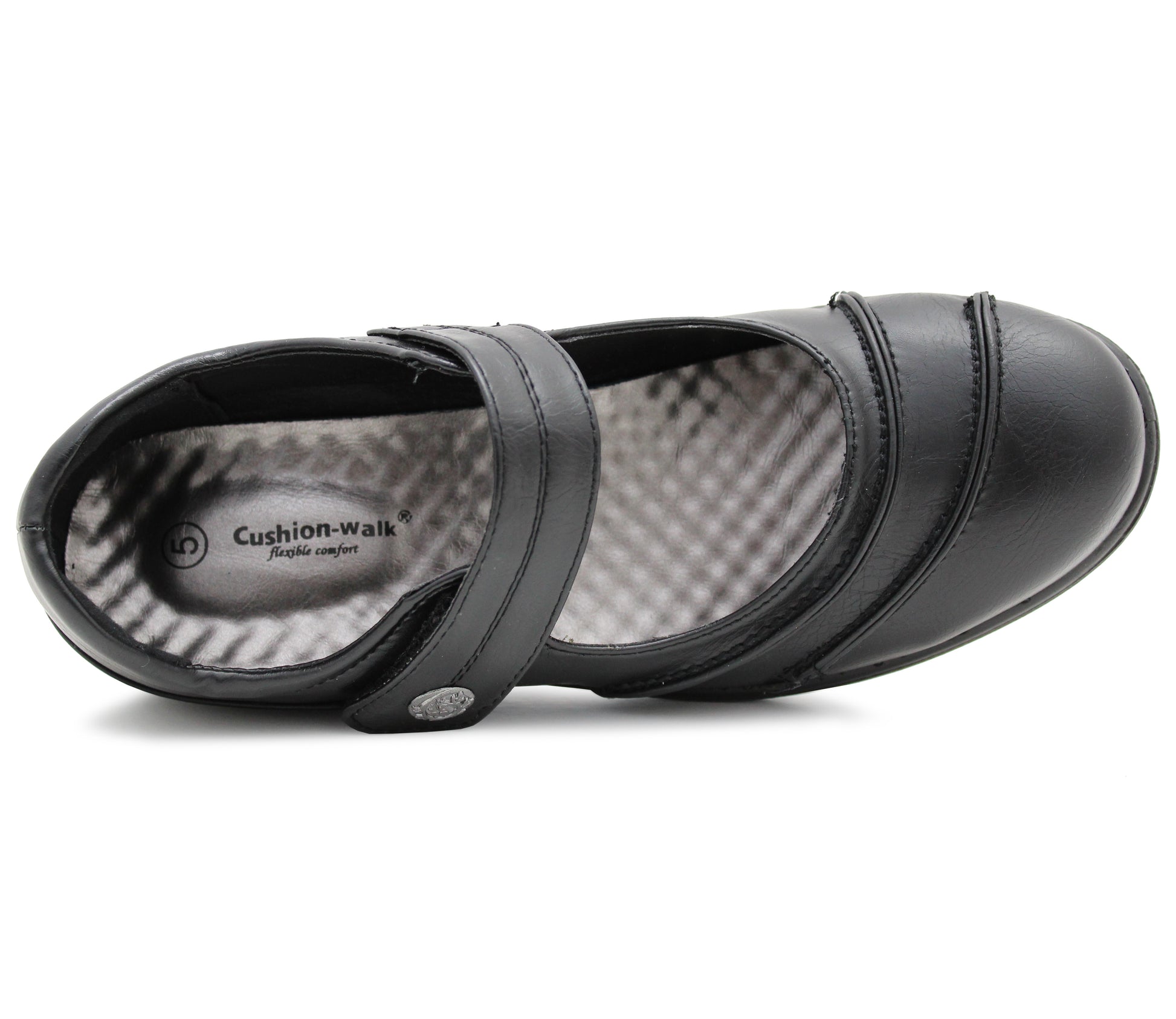 Cushion Walk Ladies Touch Fasten Strap Mary Jane Casual Comfort Flat Loafers. A soft cushioned footbed provides maximum support and comfort. Perfect for casual everyday use, combine with a different variety of clothing, these shoes go great with anything. These Shoes can be worn for both smart & casual occasions. Ideal for Work (Office & Nurses) or just Casual Daily wear