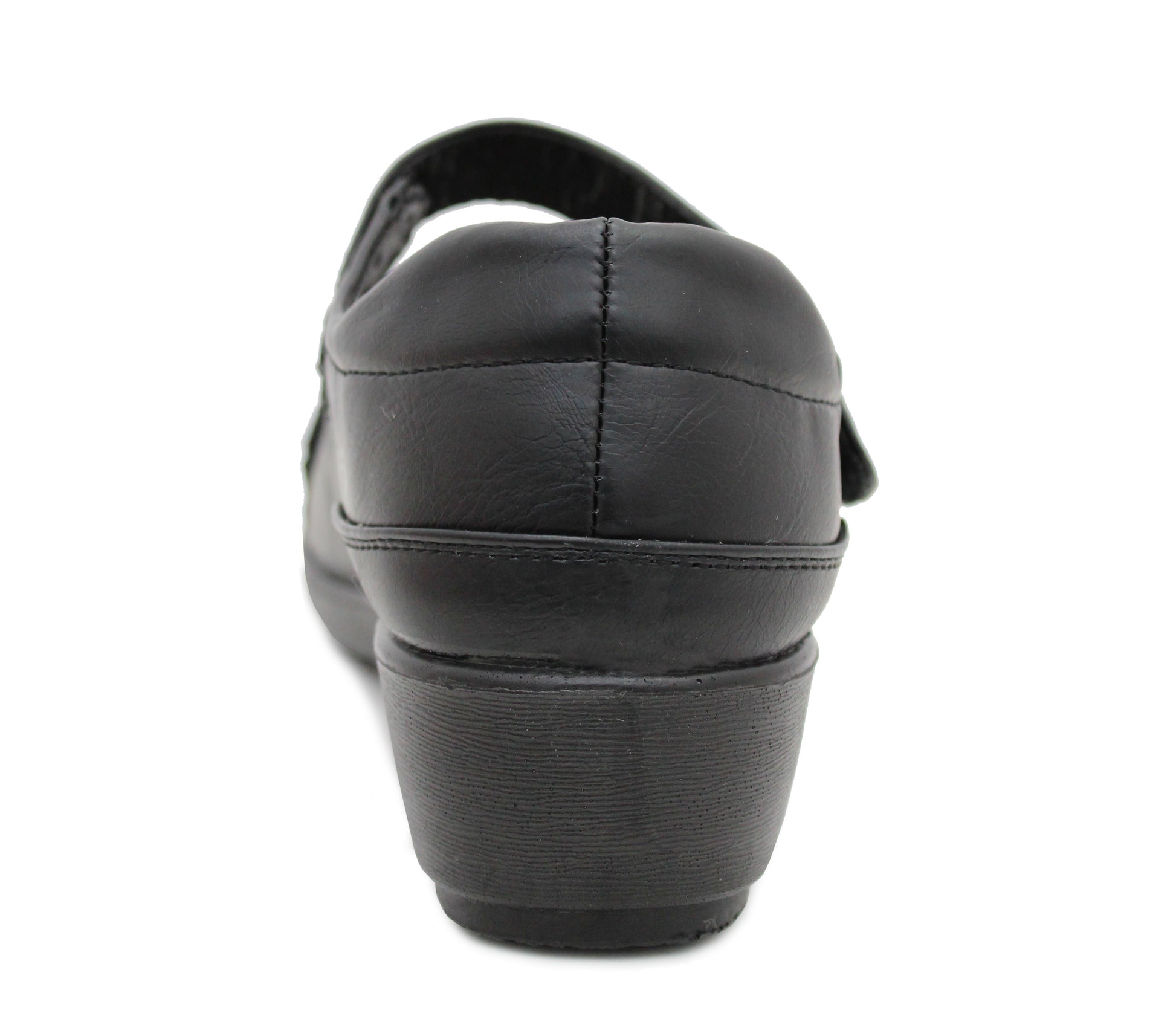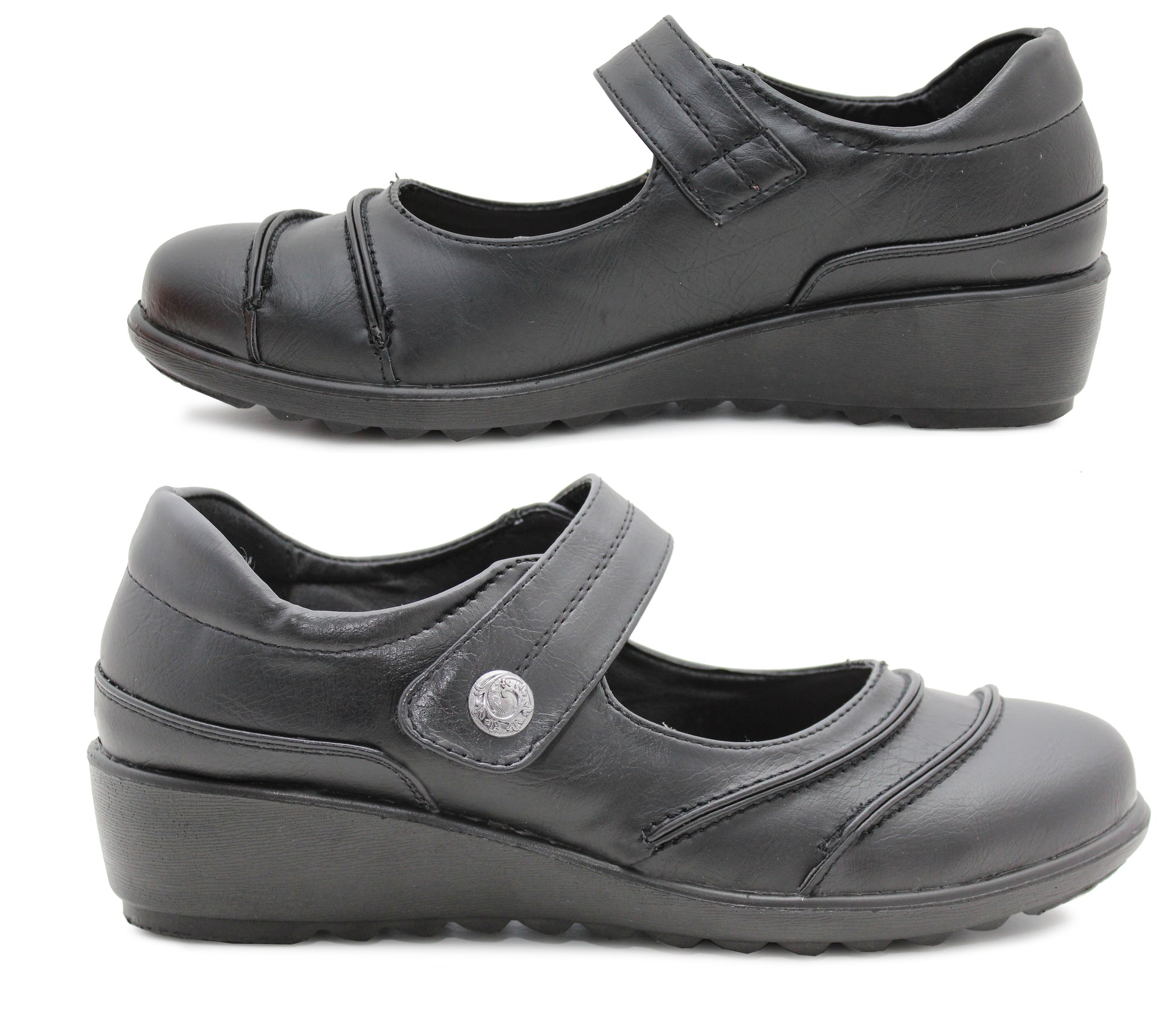 ELINOR Cushion Walk Womens Touch Fasten Mary Jane Loafers Ladies Casual Smart Low Wedge Office Moccasin Pumps Shoes