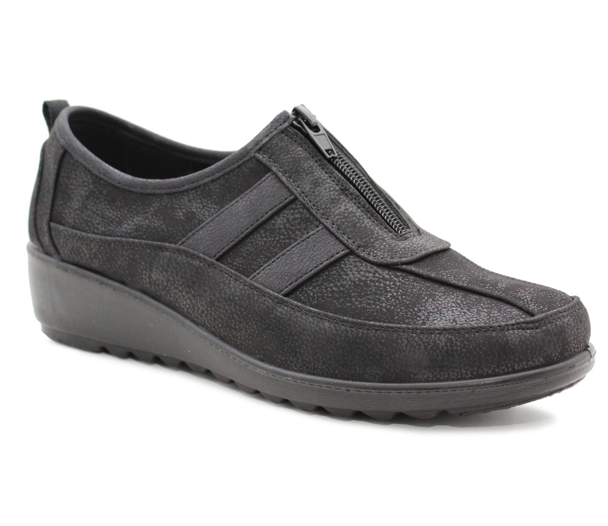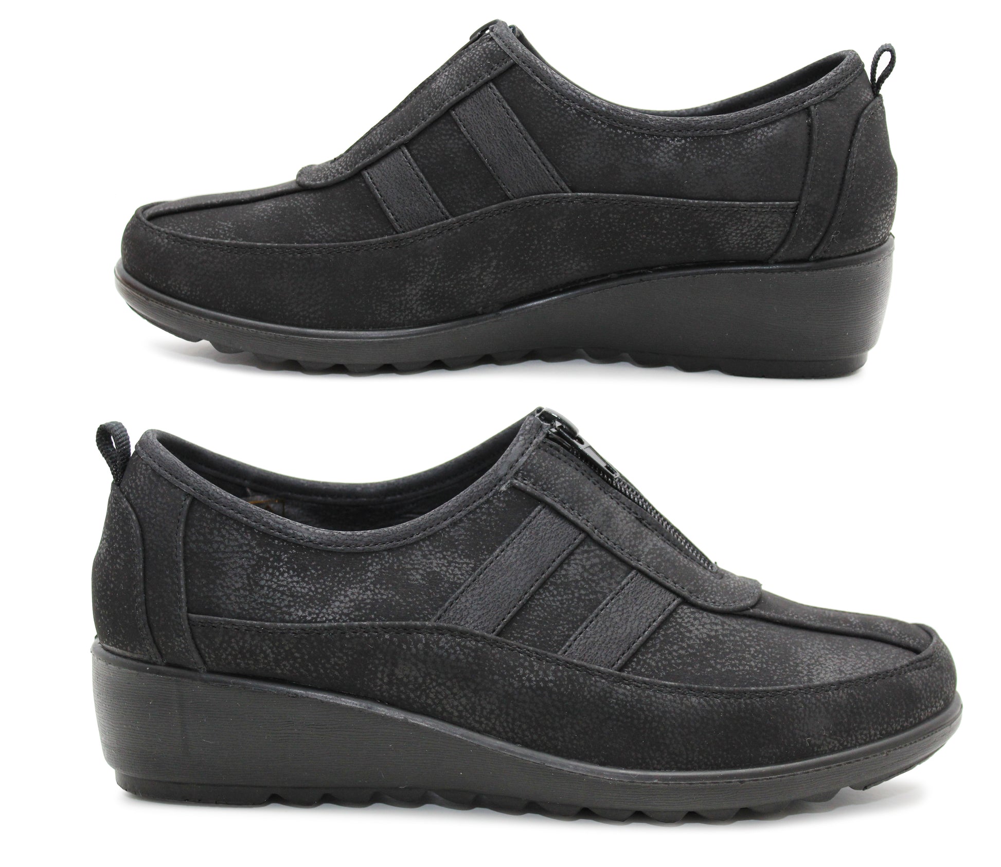 Cushion Walk Ladies Zip Up Casual Comfort Flat Loafers. A soft cushioned footbed provides maximum support and comfort. Perfect for casual everyday use, combine with a different variety of clothing, these shoes go great with anything. These Shoes can be worn for both smart & casual occasions. Ideal for Work (Office & Nurses) or just Casual Daily wear