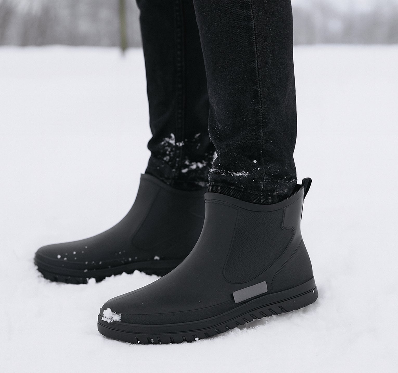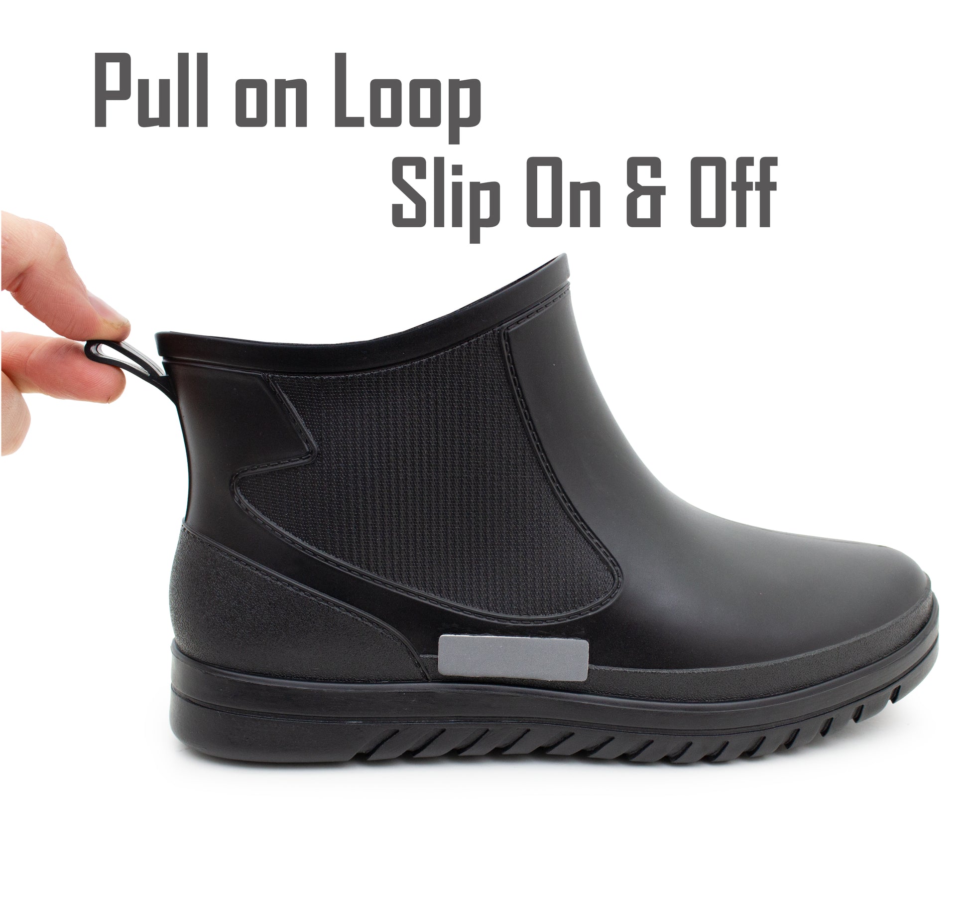 Mens Ankle Wellies Boots All Black Short Slip On Waterproof Garden Chelsea Rain Boot Snow Farm Gardening Outdoor Festival Wellingtons