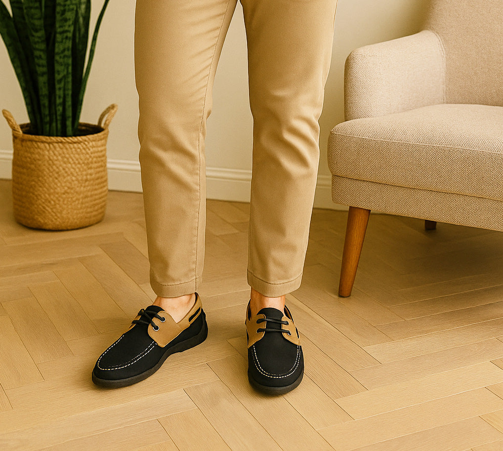 Two-tone casual boat shoes perfect for both smart and casual occasions, featuring a classic deck shoe silhouette