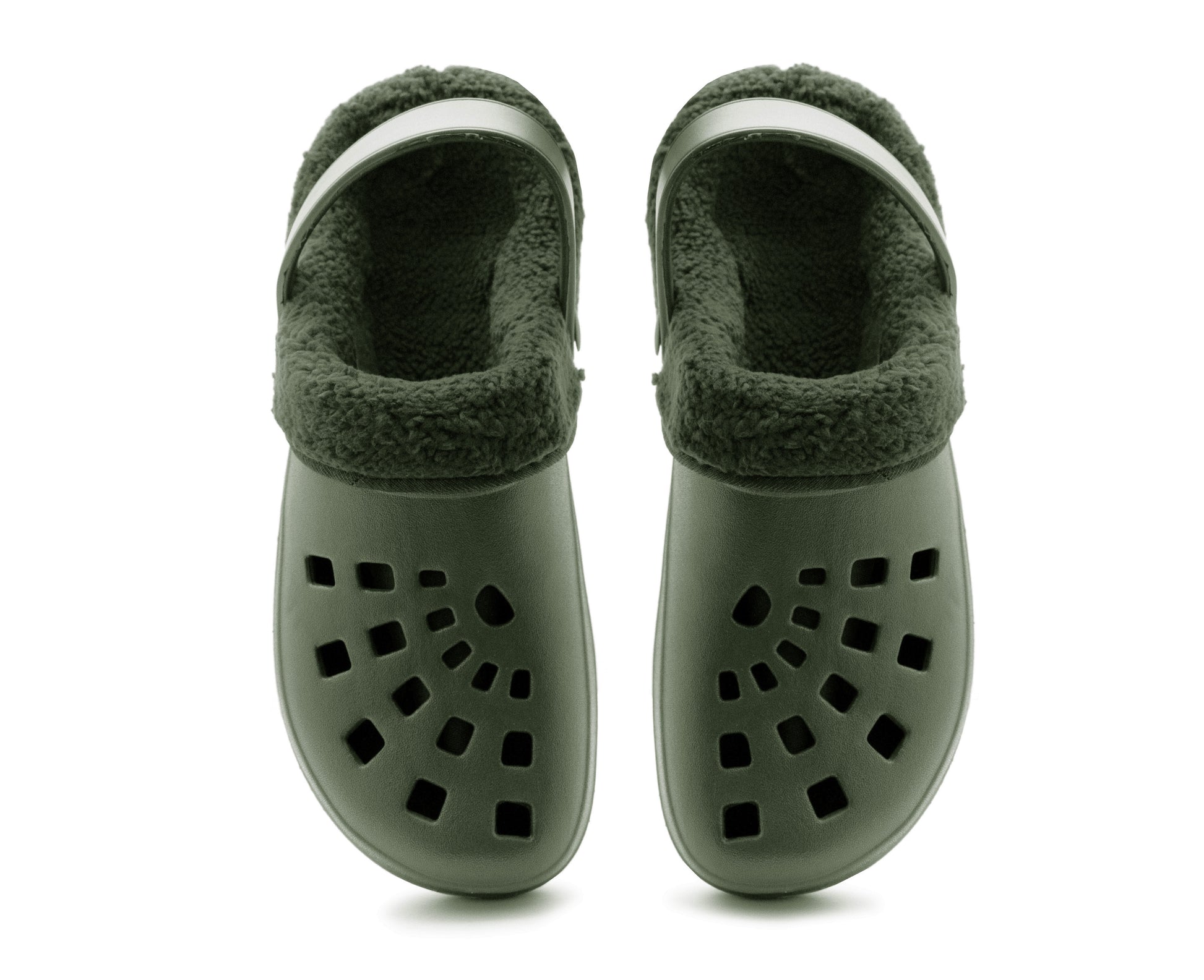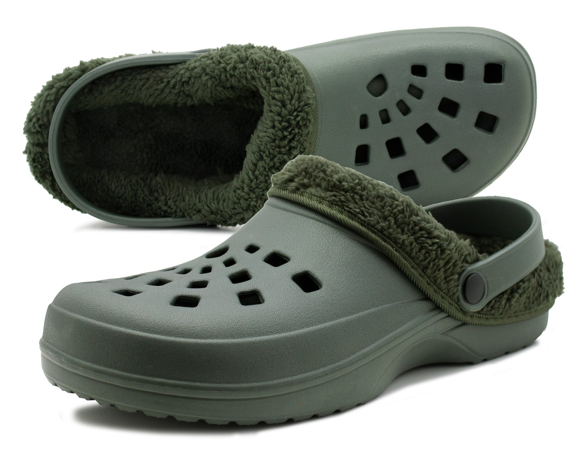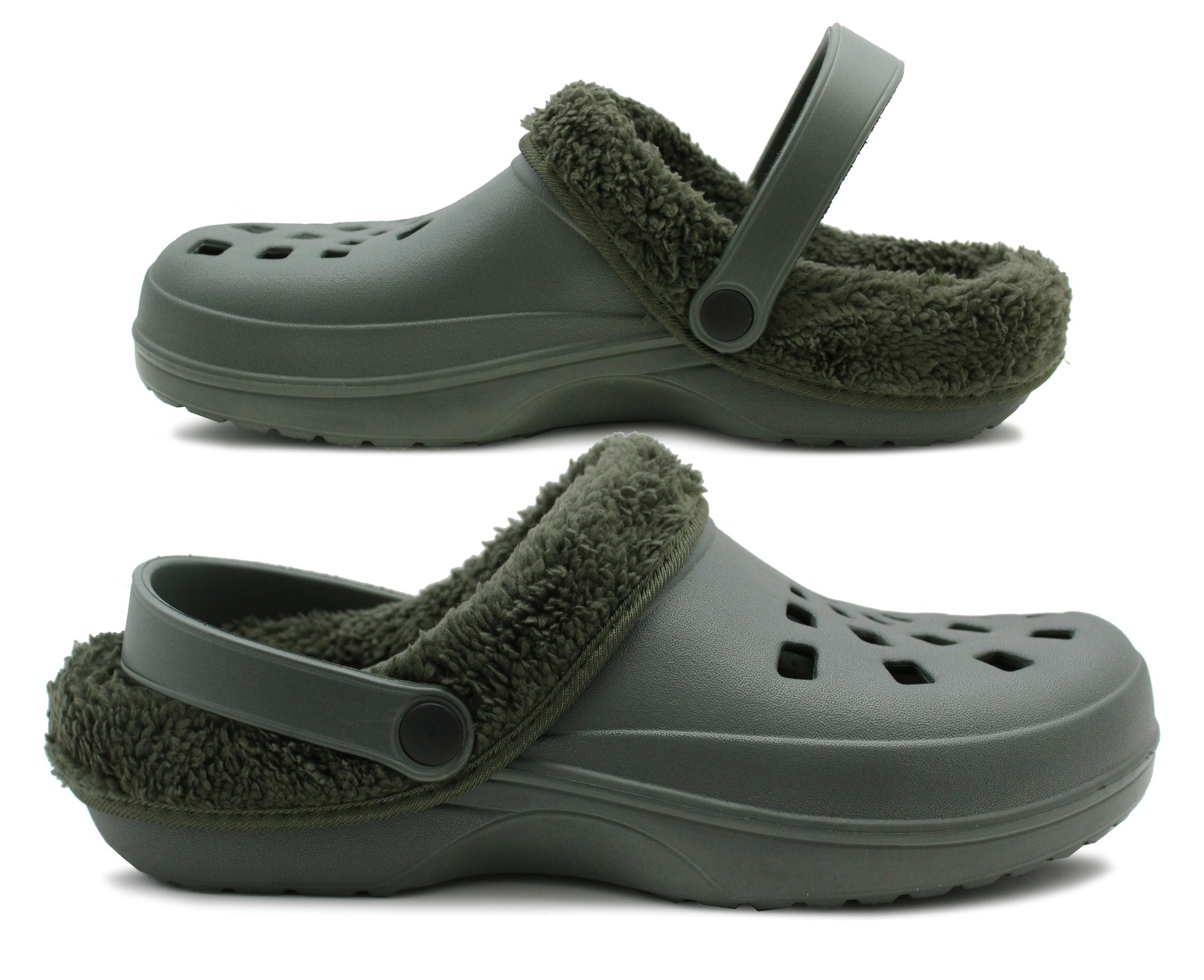 Mens Clogs Warm Fur Lined Thermal Garden Khaki Clogs Slip On Lightweight EVA Slippers Indoor House Shoes Shower Sandals