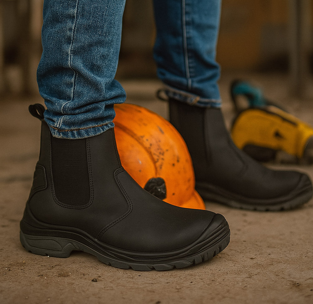 Mens Lightweight Brown Leather Safety Steel Toe Slip On Twin Gusset Work Dealer Boots Shoes