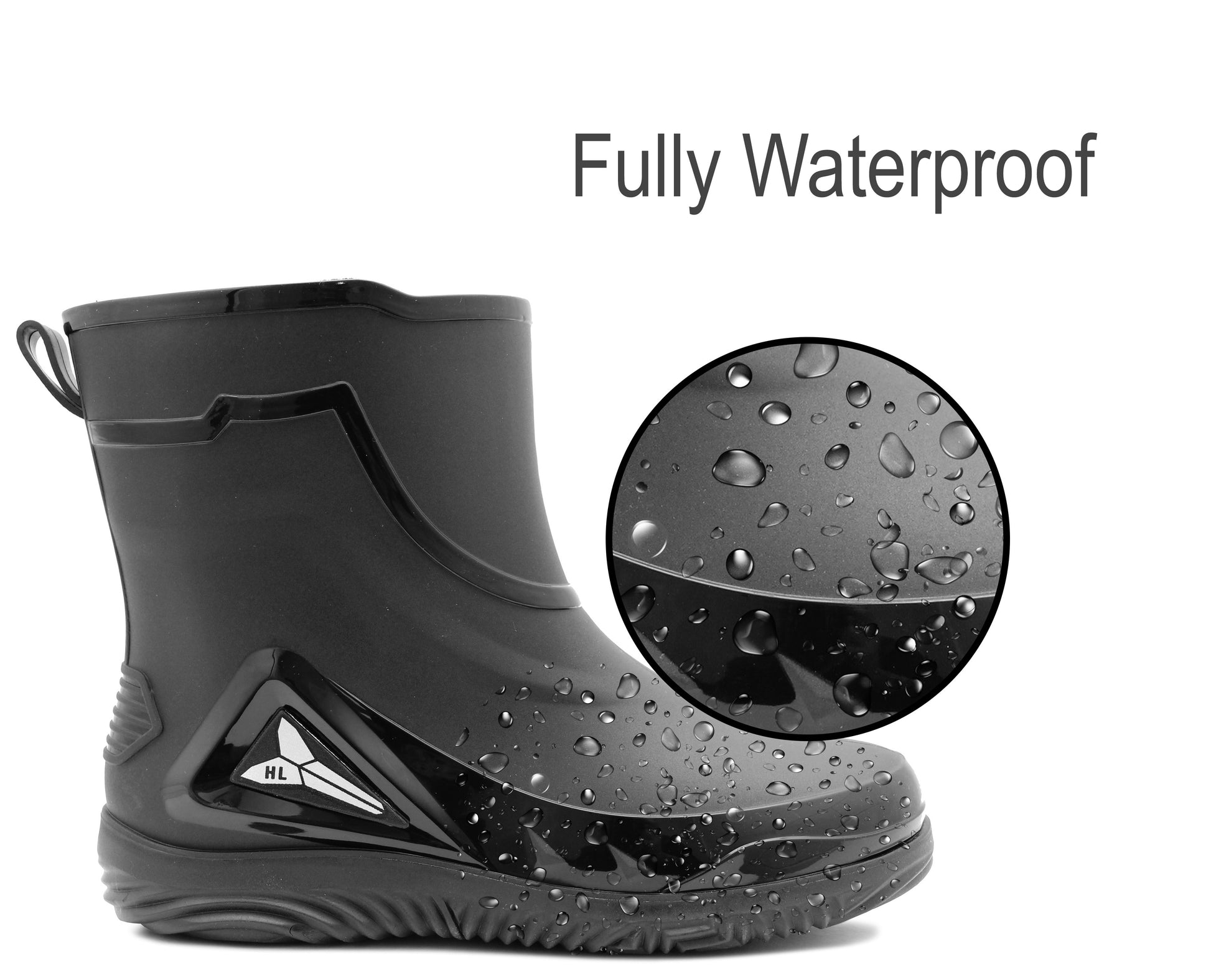 Mens Short Ankle Boot Black Wellies Waterproof Mid Calf Slip On Rain Boot Snow Farm Gardening Outdoor Festival Wellington Boots