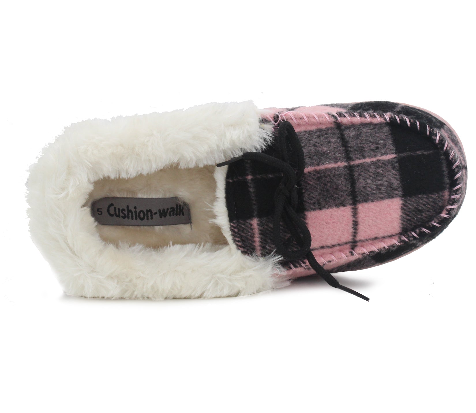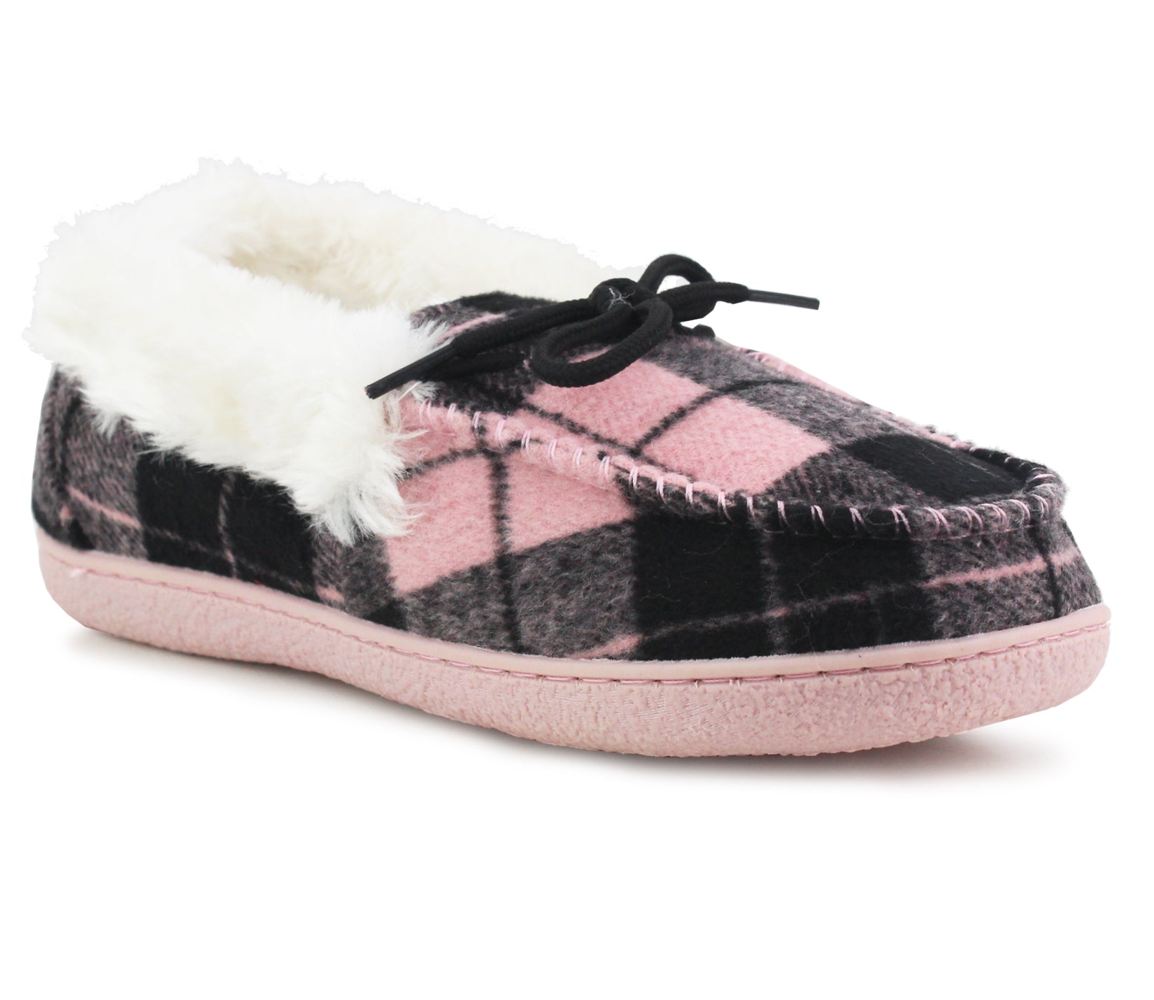 MINA Womens Faux Fur Check Slippers in Pink