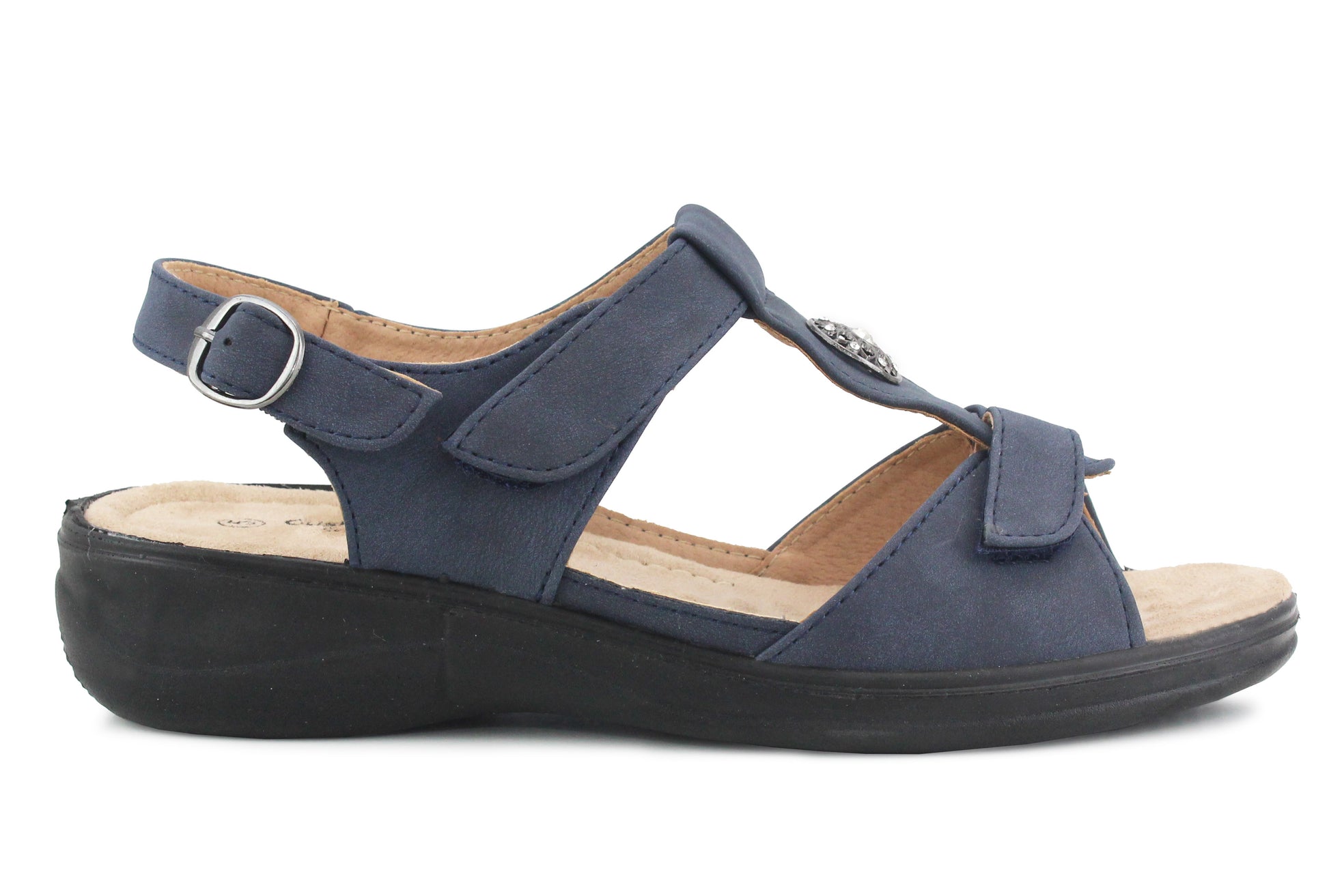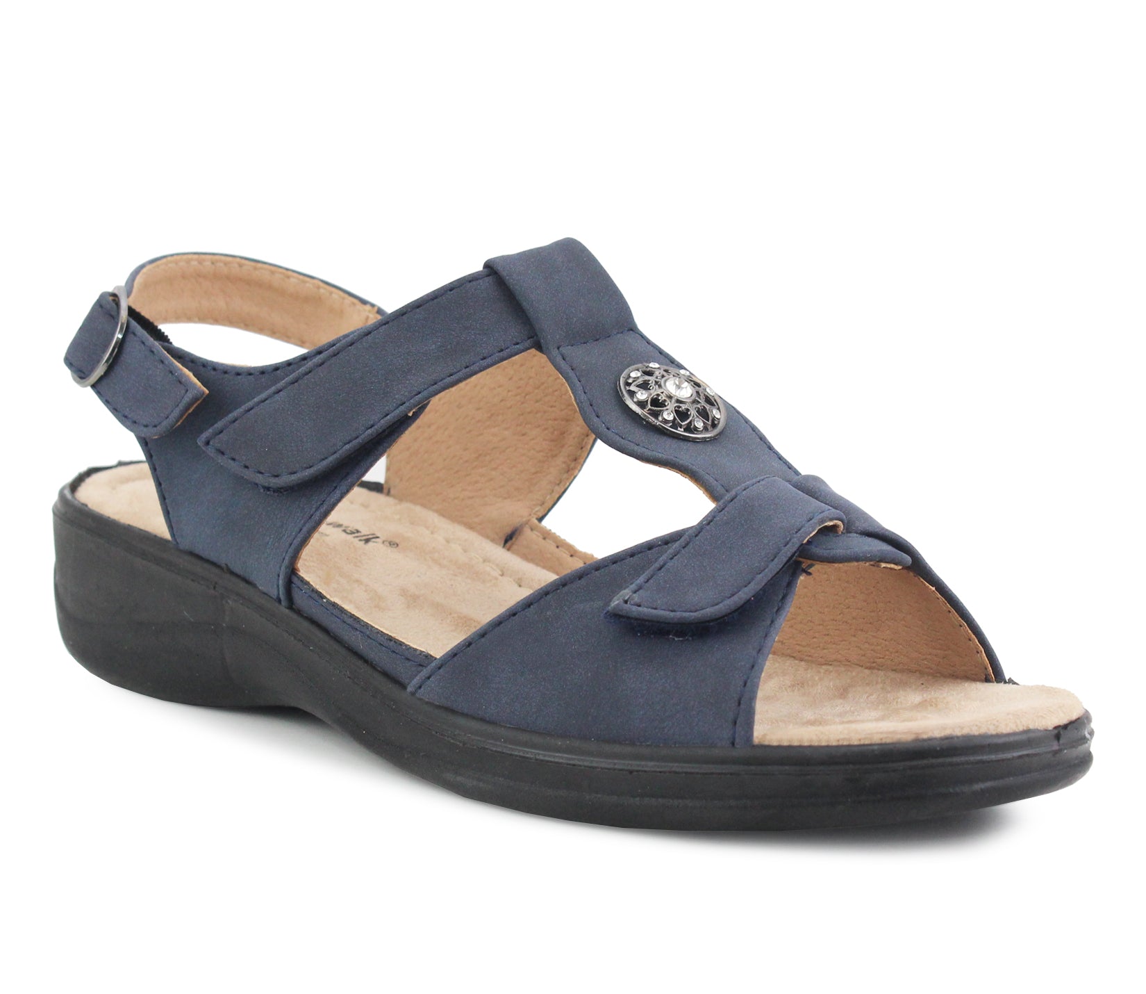 Women's Cushion Walk Sandals. Low wedge heel & touch fasten strap to slip on & off with ease. New inside box.