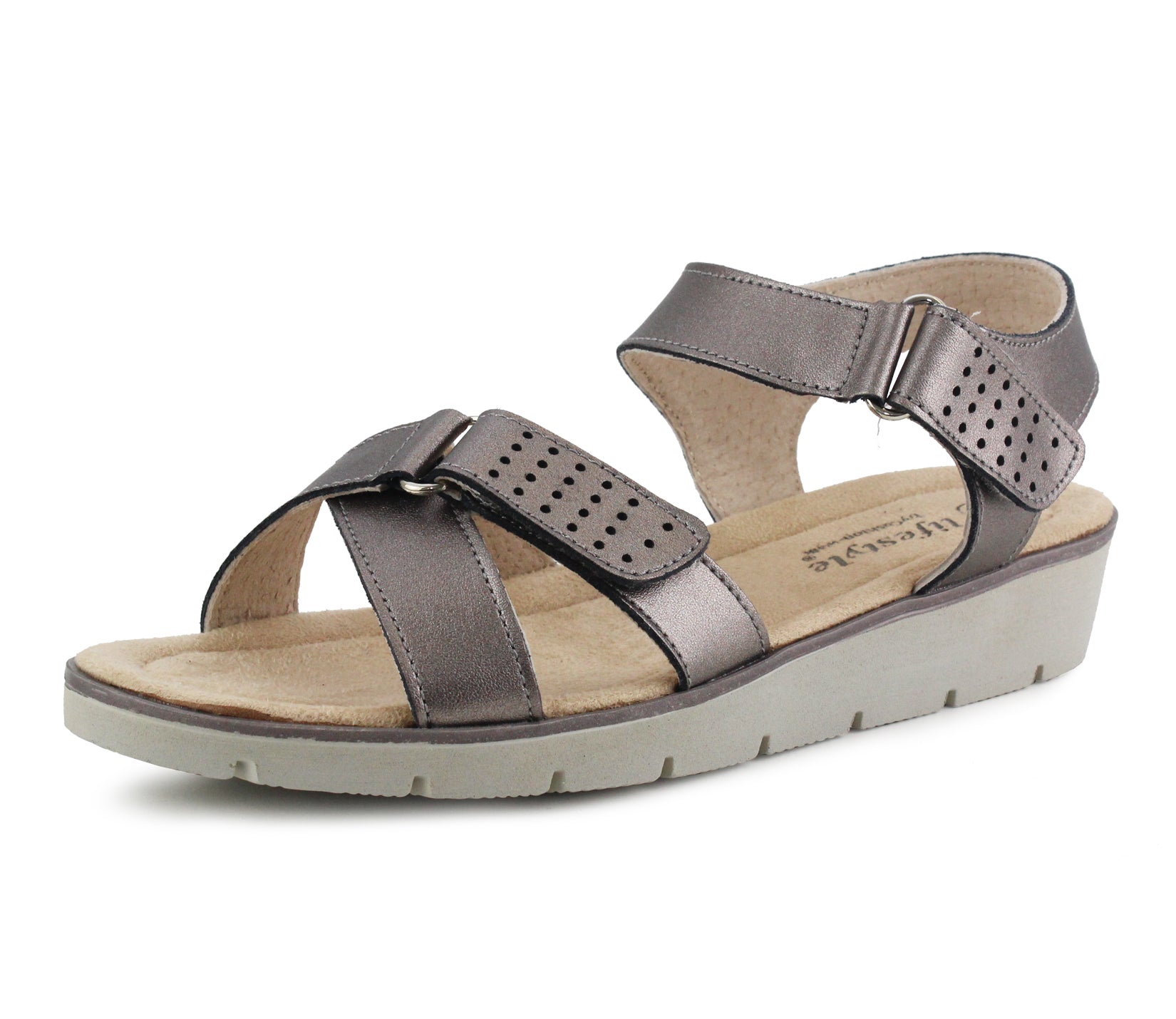STEPHANIE Womens Leather Slingback Sandals in Pewter