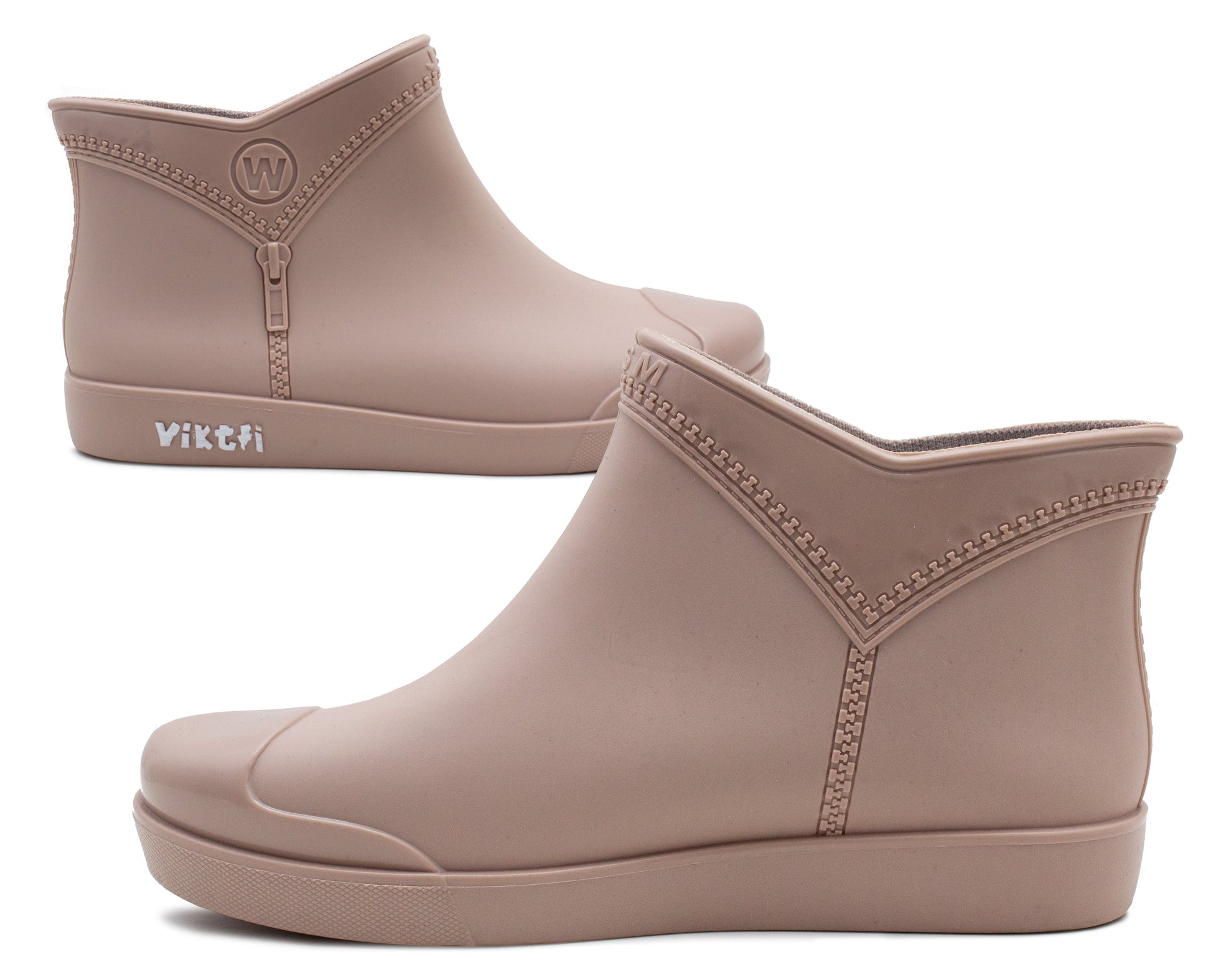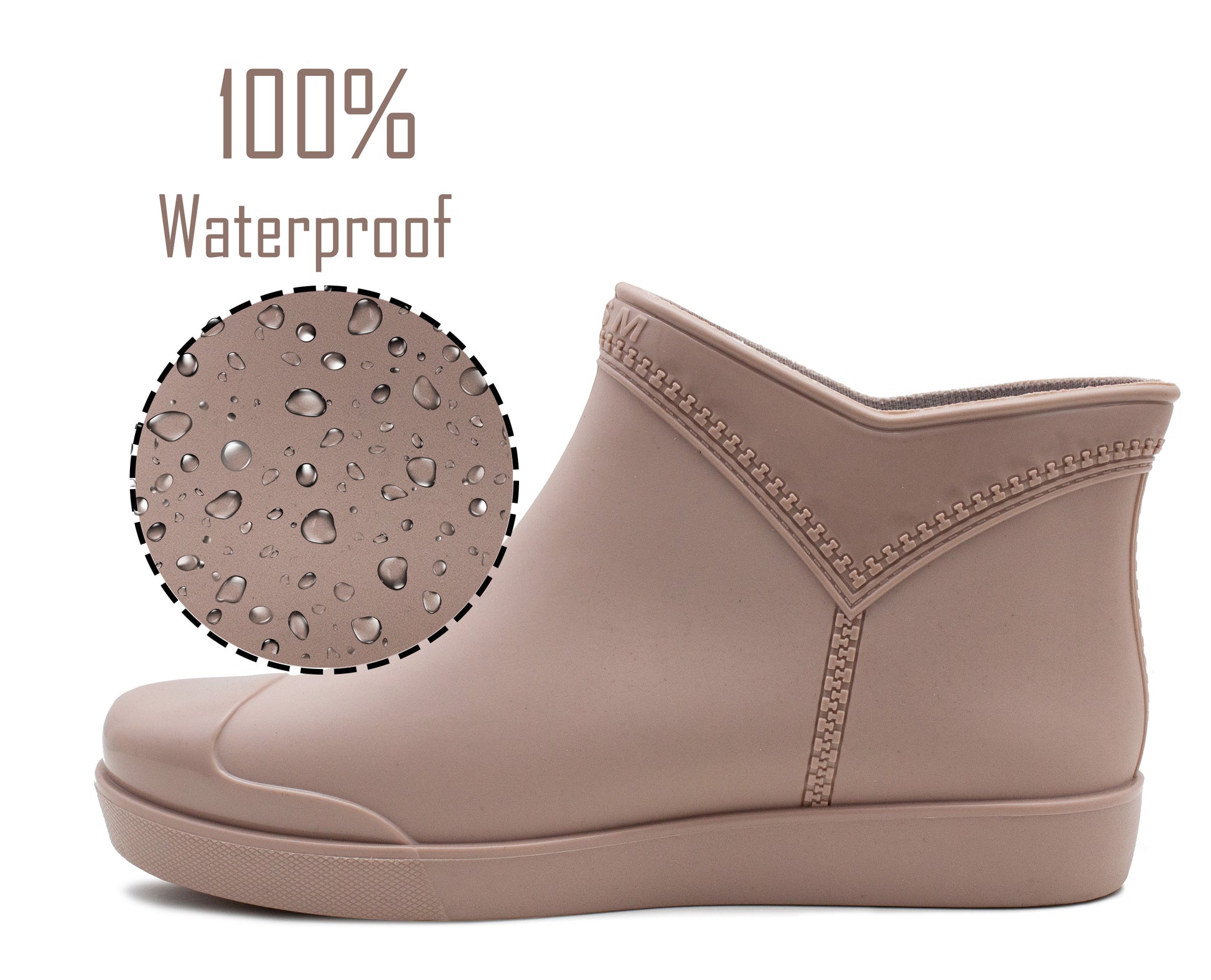Womens Beige Ankle Wellies Boots Short Slip On Waterproof Chelsea Rain Boot Snow Farm Gardening Ladies Outdoor Festival Wellingtons (Copy)