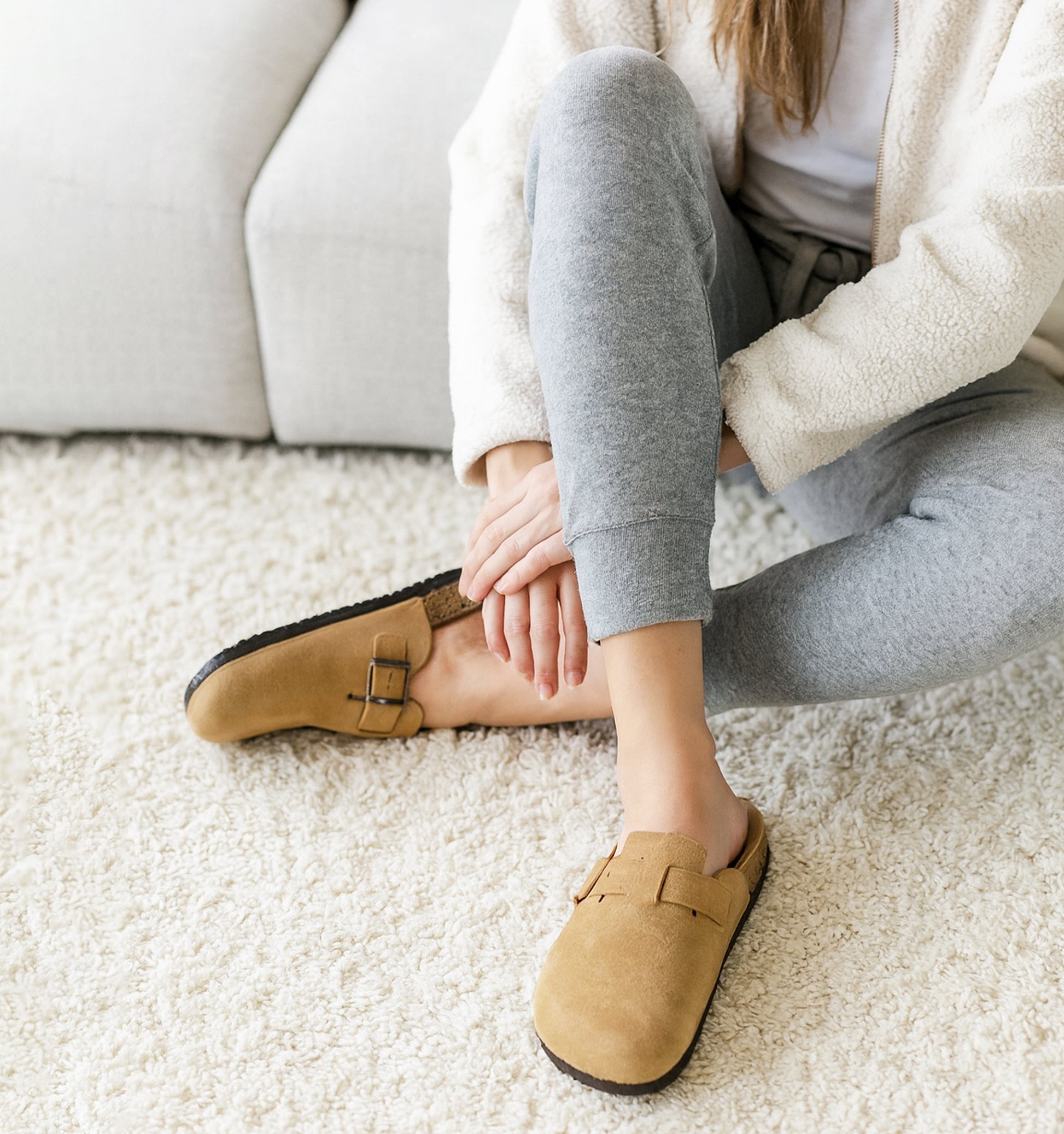 Designed for everyday comfort, these women's faux suede clogs combine practical functionality with casual style. The slip-on design with adjustable buckle allows for a customised fit, while the cork footbed provides natural arch support to reduce foot fatigue during extended wear. Crafted from soft faux suede, these backless mules offer breathability and easy maintenance. Perfect for indoor and outdoor casual settings, they deliver reliable comfort without compromising on appearance.