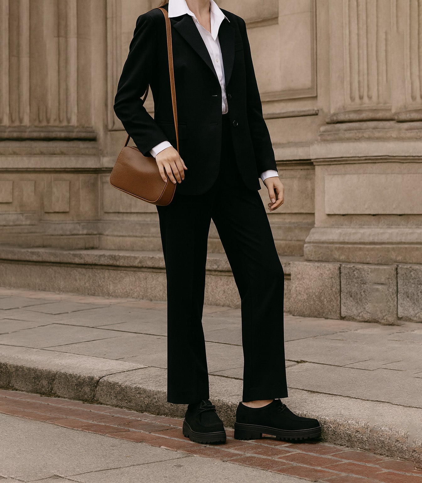 Elevate your professional wardrobe with these versatile women's platform loafers, crafted from premium faux suede for a refined finish. The chunky sole and block heel deliver exceptional comfort and stability throughout your workday, whilst the lace-up design ensures a secure, customisable fit. Perfect for transitioning seamlessly from office to casual settings, these shoes combine contemporary style with practical functionality. Ideal for business, formal occasions, and smart-casual environments, they're an investment piece that works harder than most.