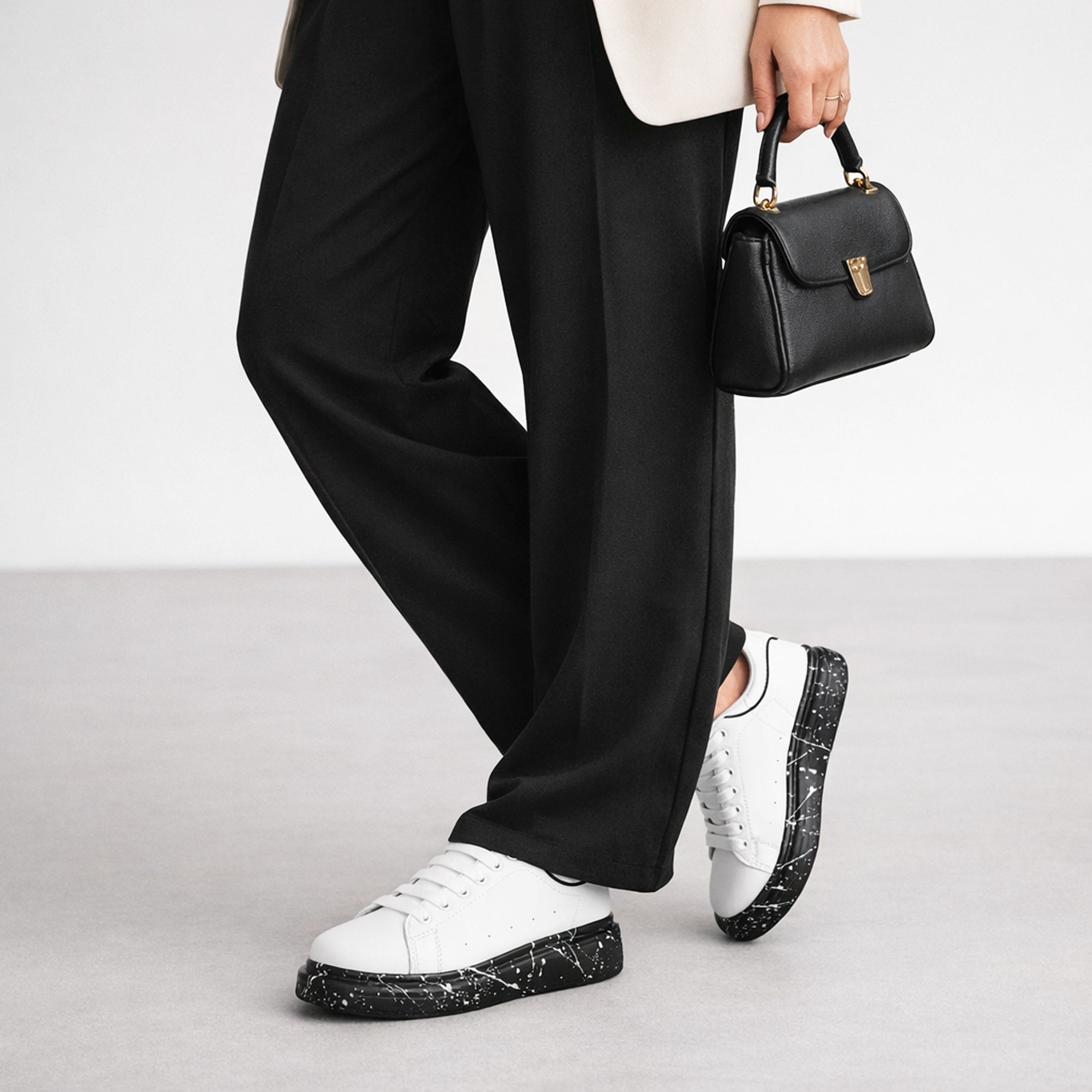 Elevate your everyday style with these women's platform trainers, designed for comfort and contemporary flair. Featuring a chunky sole that adds height and visual impact, these lace-up sneakers deliver a bold, fashion-forward look. The low-top silhouette keeps them versatile enough for casual wear, while the sturdy construction ensures durability through daily wear. Perfect for pairing with jeans, dresses, or athleisure outfits, these trainers combine practical comfort with on-trend aesthetics. A wardrobe essential for those seeking statement-making footwear.