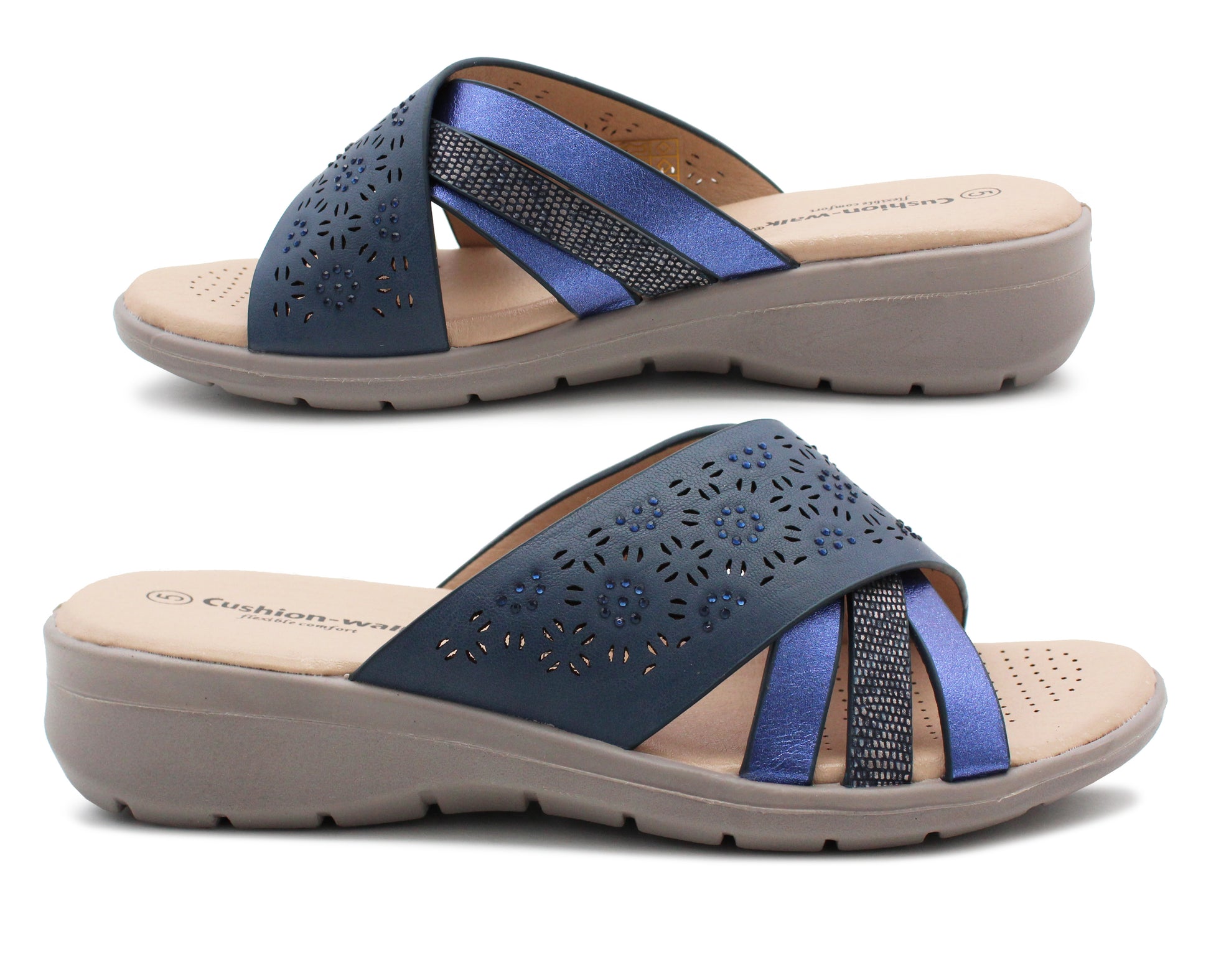 Women's Cushion Walk Backless Mule Sandals. Slip On & Off with ease. These beautiful sandals are an essential addition to your wardrobe's Summer Collection!