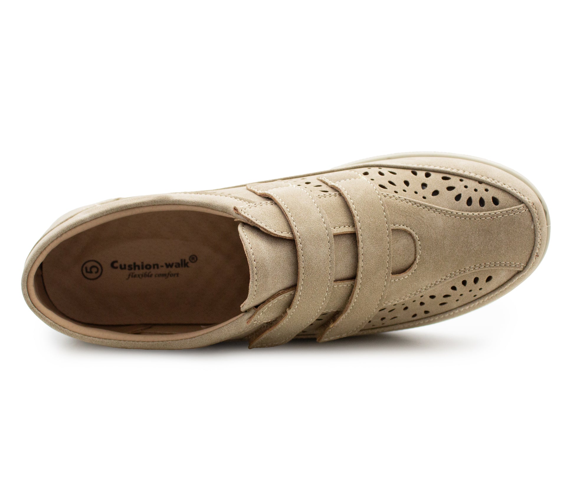 Womens Touch Fasten Loafers Flat Ladies Casual Breathable Office Nurse Pumps Shoes Beige