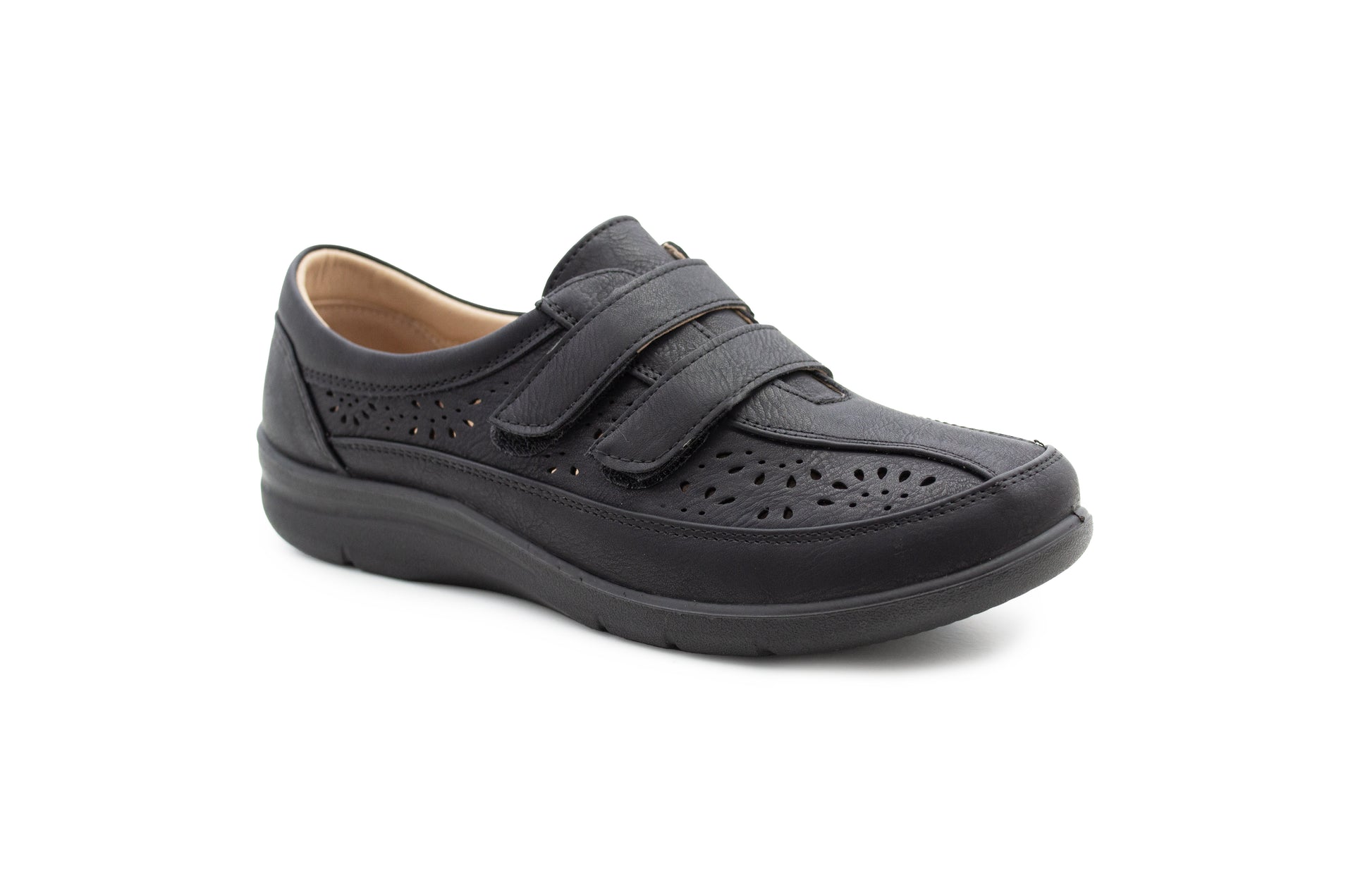 Womens Touch Fasten Loafers Flat Ladies Casual Breathable Office Nurse Pumps Shoes Black
