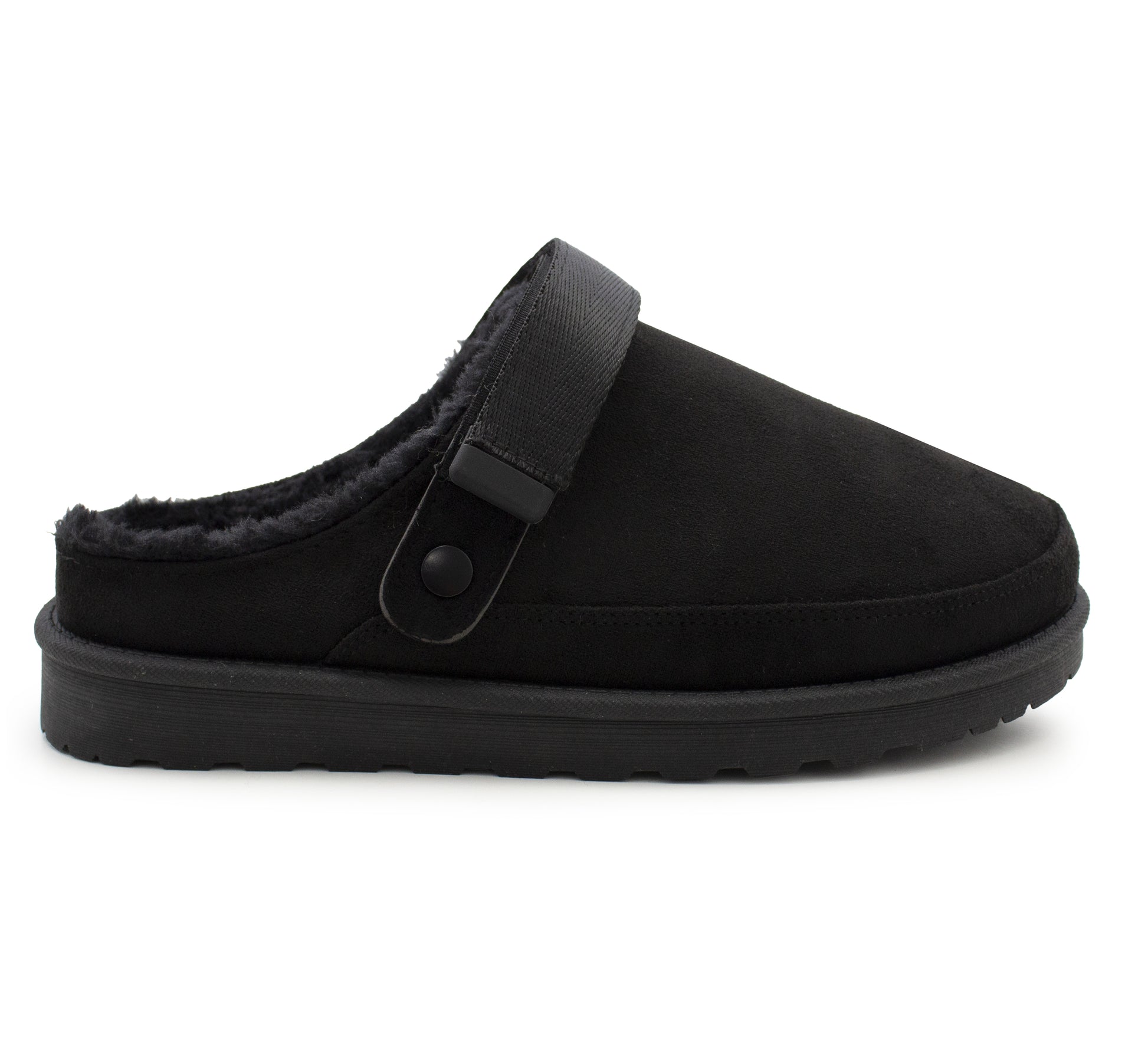 Womens Warm Slippers Black Faux Suede Fur Lined Clogs Adjustable Strap Slip On Mules Ladies Faux Suede Winter Cosy Indoor House Shoes